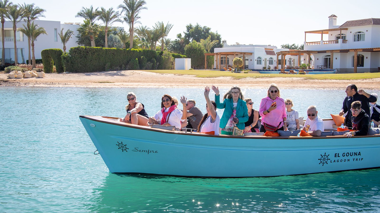 Relax with us in the morning tour and enjoy the sun (shaded places available) during our tour through the stunning lagoons of El Gouna. This tour leads you along the hotel complexes of Zaytouna Beach, Mövenpick Resort & Spa, Club Paradiso, Steigenberger, the family villa of Sawiris towards the open sea, as well as along the Three Corners, Rihana Resort, Sheraton Miramar Resort and Abu Tig Marina before heading back towards the pier of El Gouna Old Town.